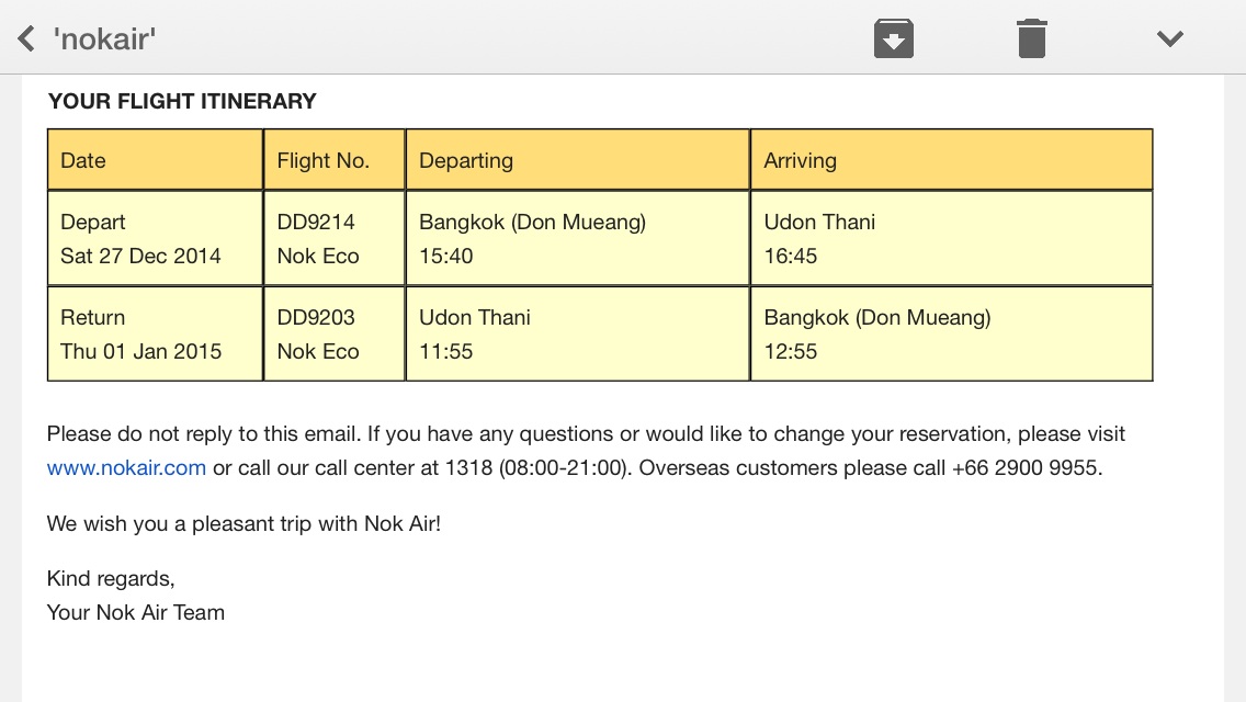 ขายตั๋วนกแอร์ ไปกลับ กรุงเทพ-อุดร วันเสาร์ที่ 27 ธันวา เวลา 15:40 กลับวันที่ 1 มกรา เวลา 11:55