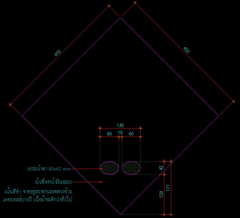 ผมได้จัดระยะที่เหมาะสมมาให้แล้ว เอาไปวัดและตัด เจาะรูผ้าเช็ดหน้ากันได้เลยครับ ไม่ต้องเย็บเก็บขอบนะ