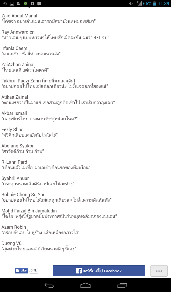 ล่าสุดเมื่อไรหนอ เคยเห็นแต่โดนพวกอาหรับก่อน ไม่ทรงก็ทรุด วิ่งในสนามแฉะ ๆ แต่ไม่มีใครเป็นตะคริว แบบนี้สิ ถึงเรียกว่าชินสนาม ชินสภาพอากาศ ที่แท้ทรู นัดหน้าต้องชนะมาเลเซียให้เยอะๆ ถ้าชนะมาเลเซีย