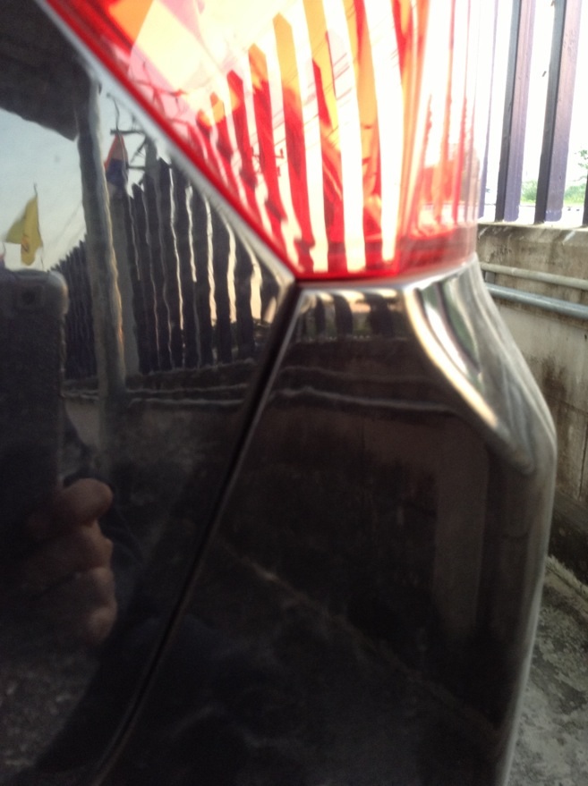 เหตุการณ์เกิดขึ้นประมาณ 17.50 น. เมื่อวานนี้ (21 ตค) ที่ถนนเสรีไทย ระหว่าง 55-57 ก่อนไฟเขียวไฟแดง หน้าม.สหรณ์ รถวิ่งอยู่เลนกลางเพื่อจะตรงไปมีนบุรี ถูกมอเตอร์ไซด์ชนท้าย ด้านขวา ลงไปเพื่อจะดูทะเบียนรถ