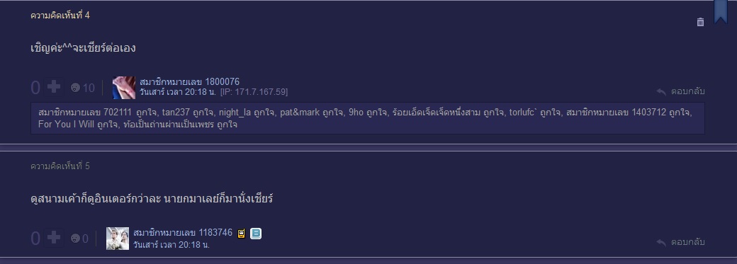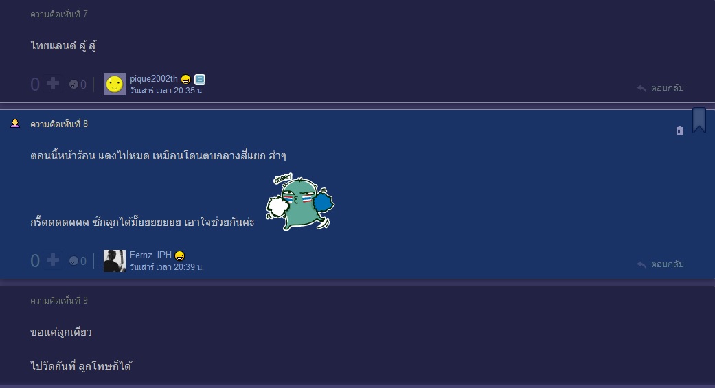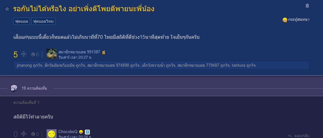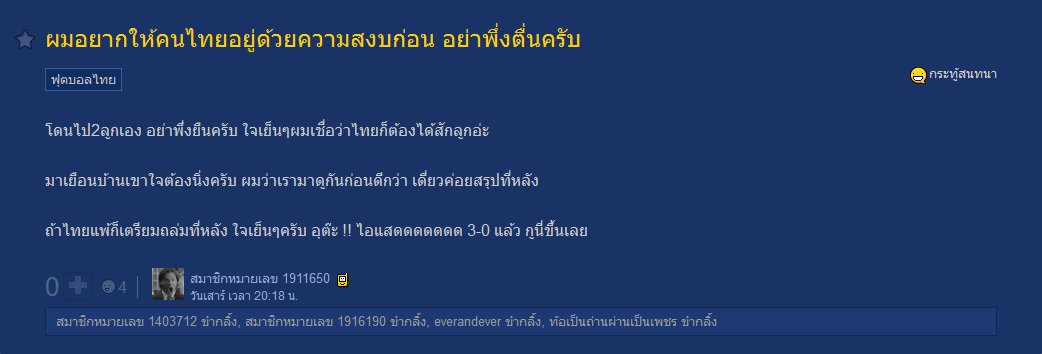 จะคัดเฉพาะอันที่ไม่ซ้ำกับที่คนอื่นเอามาลงแล้วนะ คอมเม้นท์!! แฟนบอลไต้หวัน ก่อนเริ่มเกมส์ ??? Comment แฟนบอลเวียดนามในกลุ่มปิด มีการเปรียบเทียบไทยลีกกับ วีลีก คอมเม้นท์ แฟนบอลเวียดนาม หลังไทยชนะไ