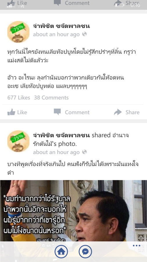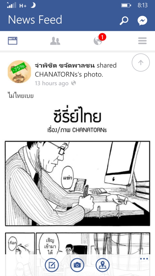 ส่วนอันนี้Beta จะเห็นว่าภาพที่จ่าแชร์มาจะไม่ปรากฎคำว่า"ไม่ไทยเบย"ที่จ่าพิมพ์มาด้วย รวมถึงเข้าไปดูคอมเมนท์ในพื้นที่ของจ่าไม่ได้ ถ้ากดดูคอมเมนท์แล้วจะไปหาคอมเมนท์ในพื้นที่ของคุณCHANATORNsทันที