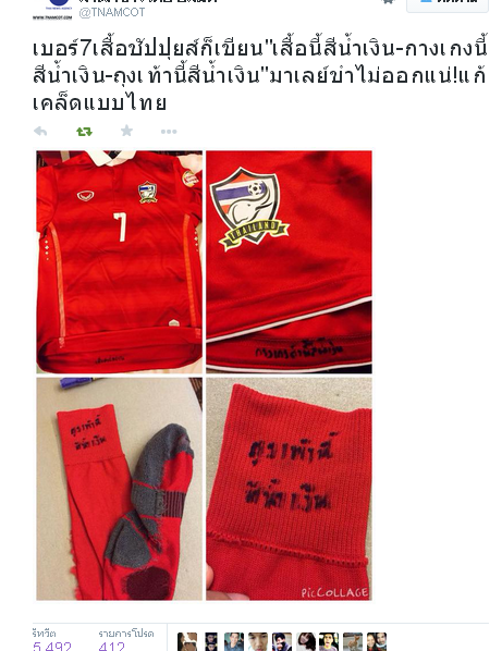 คิดงัย? นักฟุตบอลไทย เขียนข้อความ "เสื้อตัวนี้สีน้ำเงิน" ลงบน เสื้อทีมชาติสีแดง ...