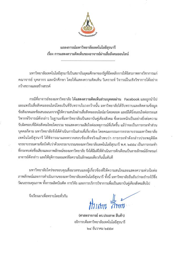 มหาลัยมีแถลงการณ์ตามนี้ค่ะ เครดิตจากเพจมหาลัย