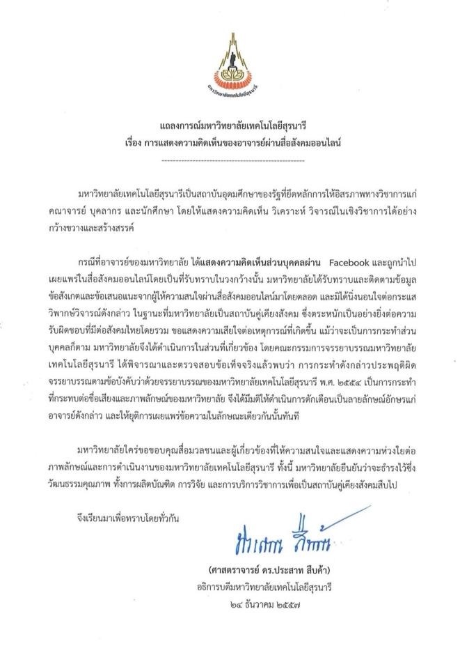 ไม่ทราบว่ามีใครเอามาลงรึยัง แต่ทางมหาวิทยาลัยได้มีการดำเนินการไปตามสมควรแล้วครับ