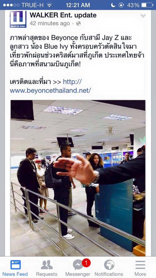 เซอร์ไพรส์แฟนๆในเมืองไทยที่ได้เห็นภาพนี้ไม่น้อยค่ะ เมื่อนักร้องดีว่าระดับโลก “บียอนเซ่” พร้อมด้วยสามีนักดนตรีคนดัง “เจย์ซี” และลูกสาวน้องบลูไอวี่ เดินทางถึงสนามบินนานาชาติภูเก็