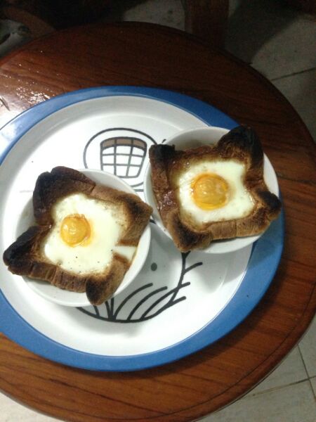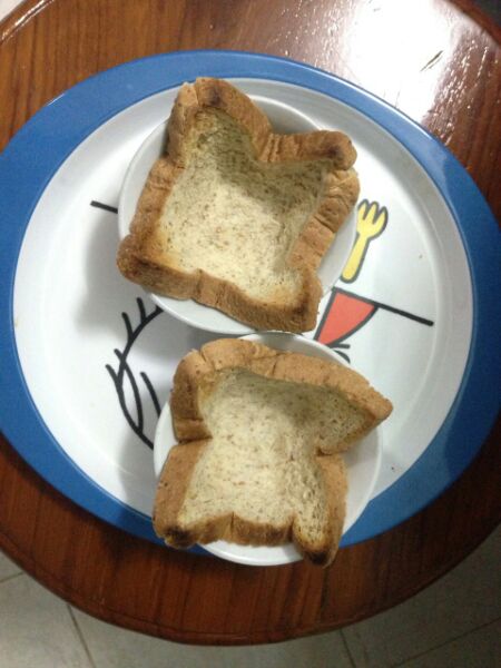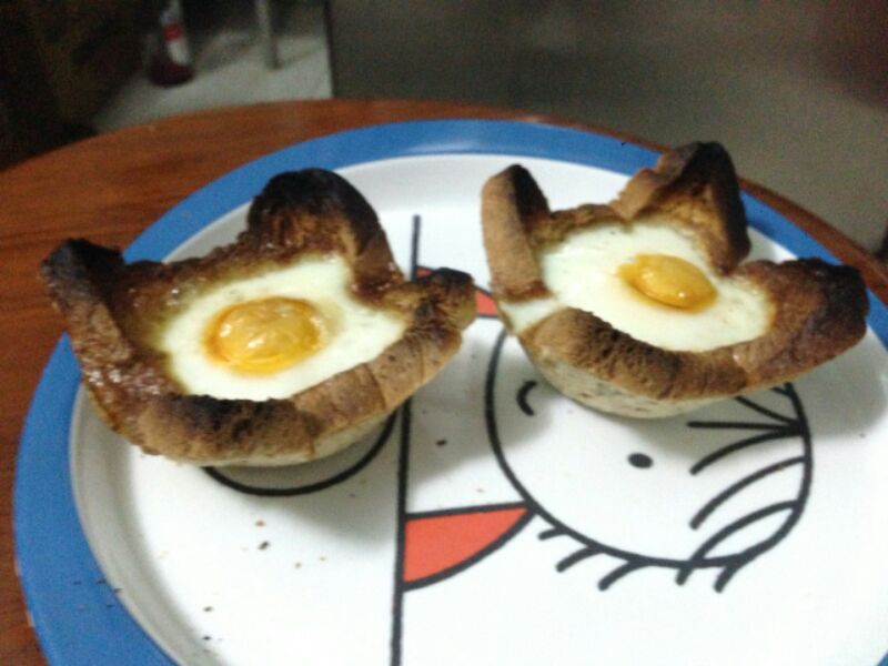อบไปอีก 5 นาที ขอบเลยไหม้อย่างที่เห็น ไข่ก็สุกเกินไป