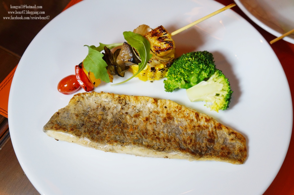 Grilled Sea Bass Fillet กันบ้าง เมนูนี้เป็นปลากะพง มากันแบบทั้งชิ้น ครึ่งตัว