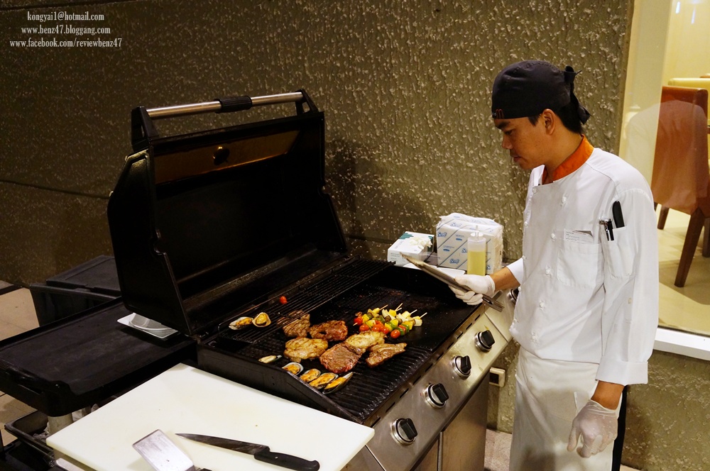จะมีเตา BBQ ตั้งโดดเด่น พร้อมพี่เชฟ คอยย่างให้เราหม่ำกัน