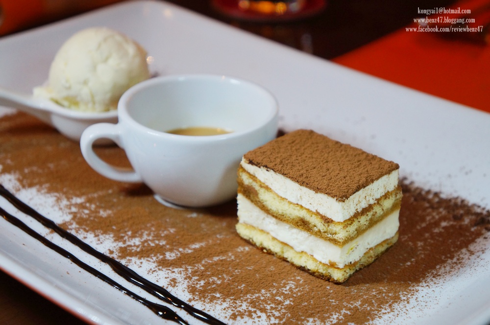 อีกเมนูเป็น ทีรามิสุ เสิร์ฟกับ กาแฟ และ ไอศครีมวนิลา