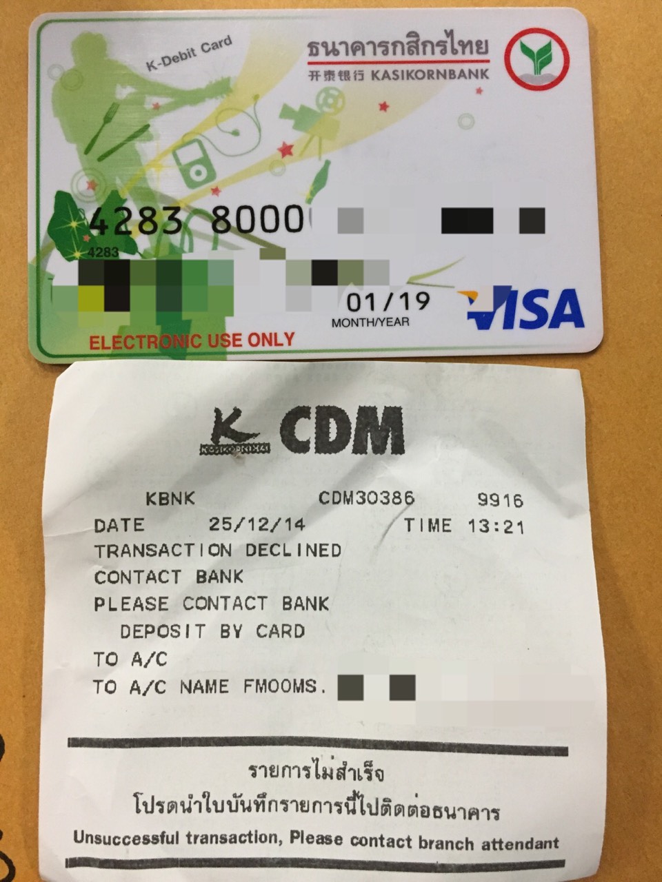 เหตุการณ์เกิดแล้วเรารีบไปติดต่อที่แบงค์สาขาที่รับผิดชอบ เจ้าหน้าที่กดต่อไปที่คอลเซ็นเตอร์เพื่อให้แจ้งปัญหานี้ให้