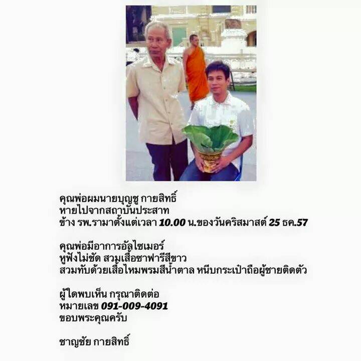 ประกาศตามหาคนหาย พ่อคุณโก้ ชาญชัย