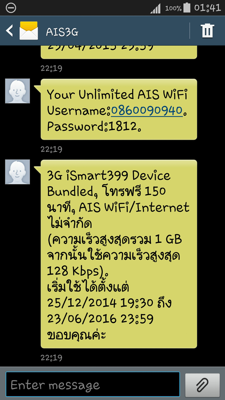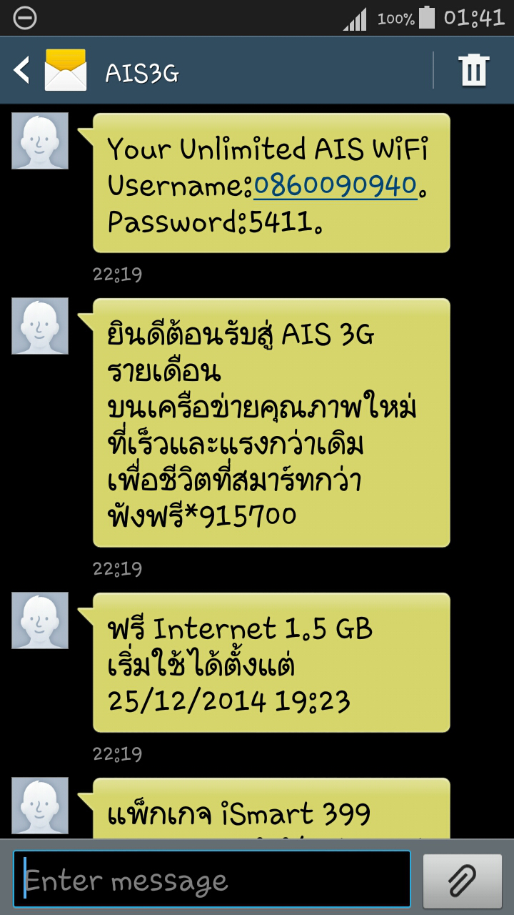 โทรฟรี 150 นาที, AIS WiFi/Internet ไม่จำกัด (ความเร็วสูงสุดรวม 1 GB จากนั้นใช้ความเร็วสูงสุด 128 Kbps).