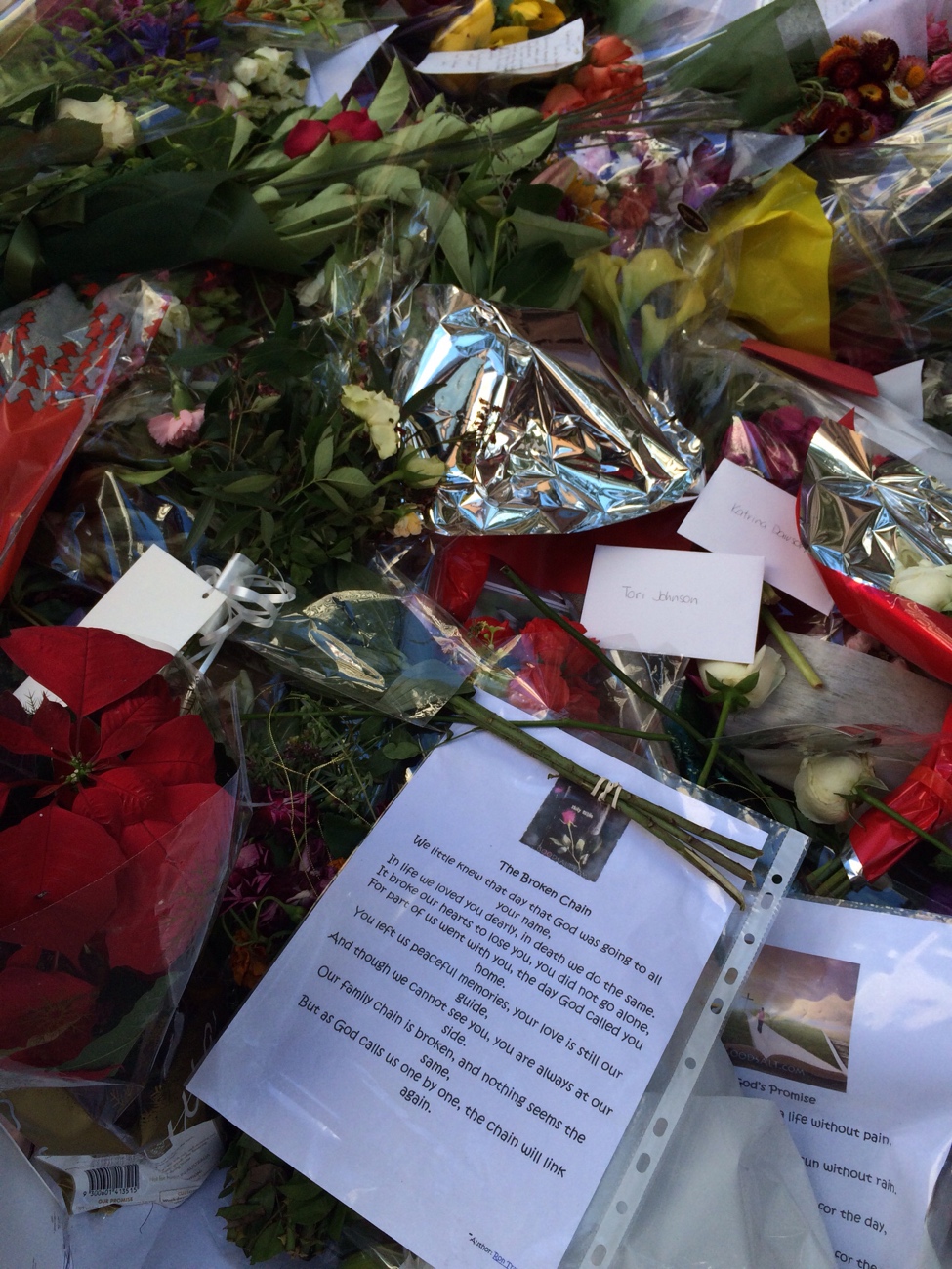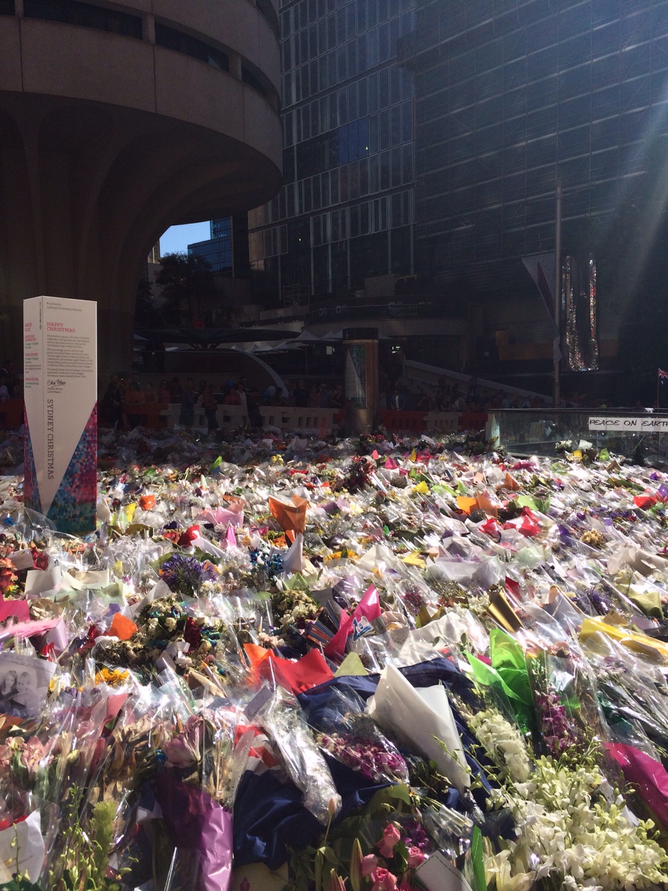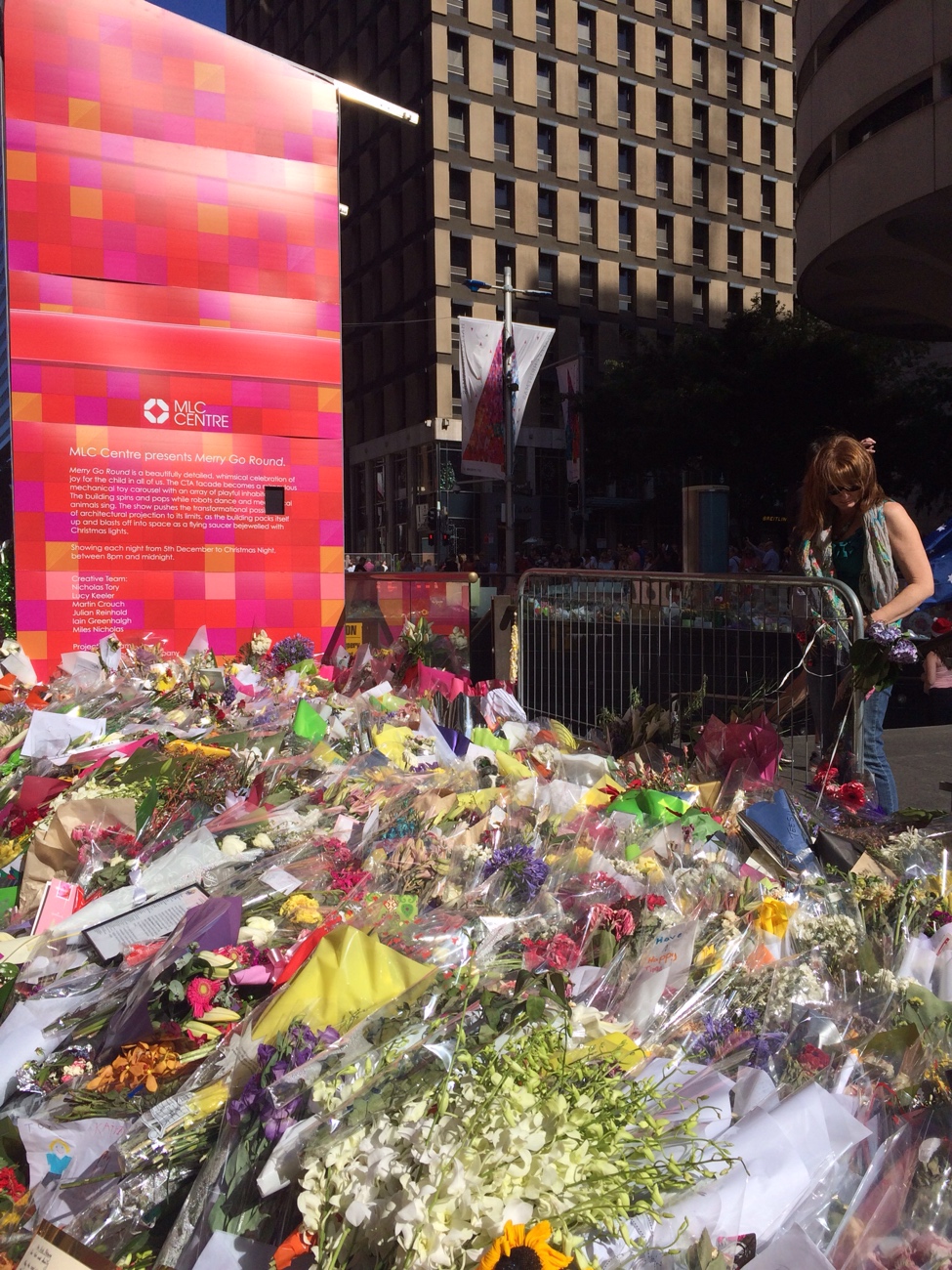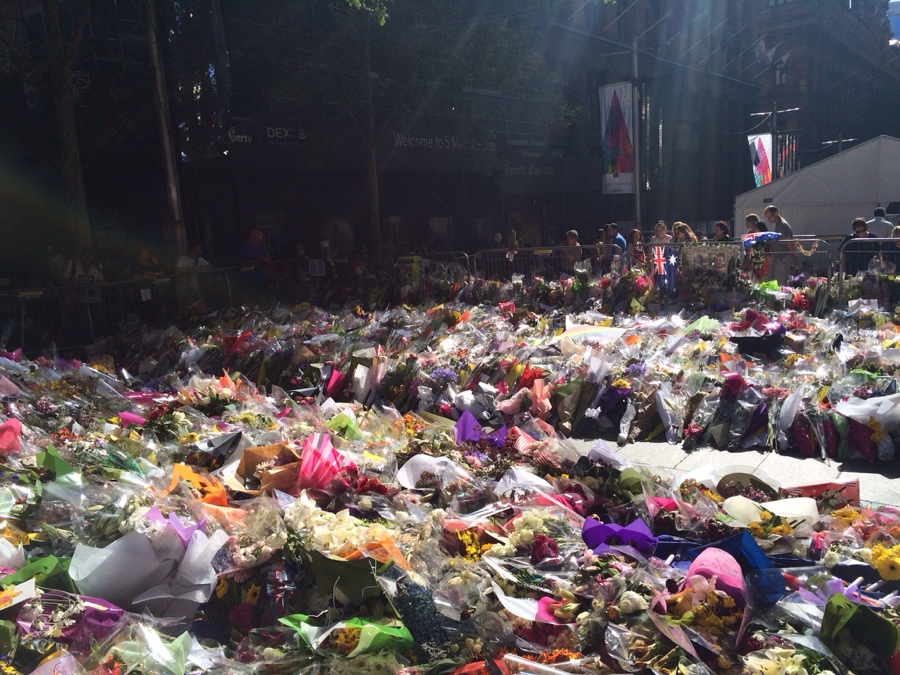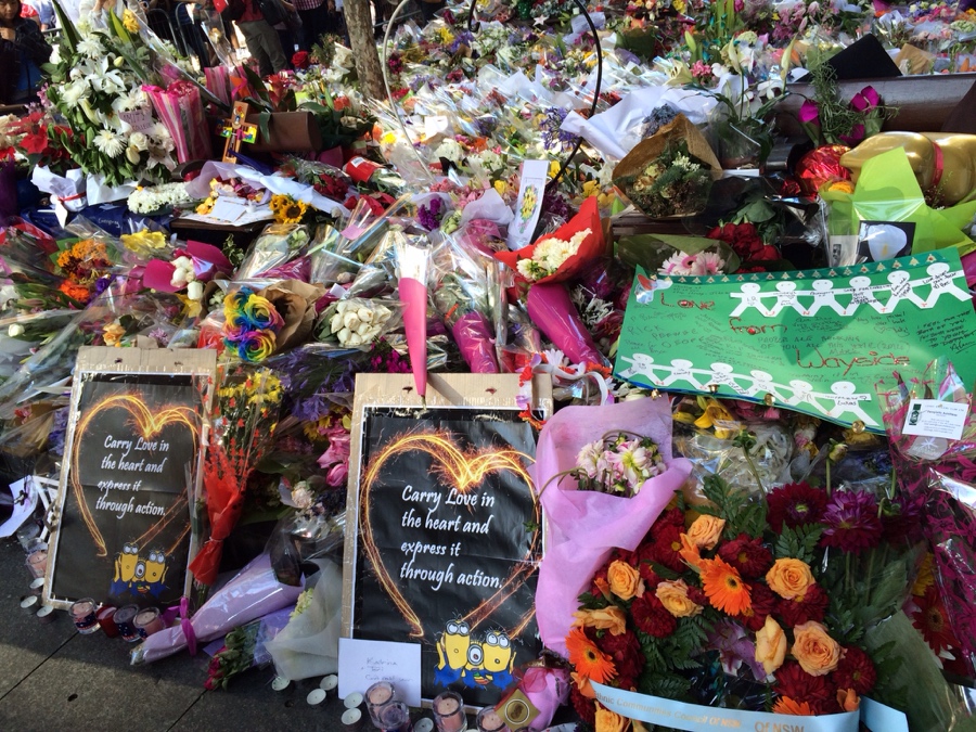 พอดีแวะไปที่ Martin place หลังจากเกิดเหตุการณ์ จับตัวประกันใน lindt cafe โดยแอบอ้างเป็นขบวนการก่อการร้าย ทำใหเคนเสียชีวิตไป 2 ราย คือ Tori กับ Katrina ที่เอามาลงที่เพราะอยากให้เห็นว่า ที่นี่เขาเห็นทุกชีวิตมีค่า ไม่ว่าจะเป็นใครก็ตาม ตอนที่ผมไปที่นั้น ได้รู้สึกถึงรัก เศร้าและการสูญเสีย ซึ่งเป็นความรู้สึกที่สัมผัสได้เลยครับ