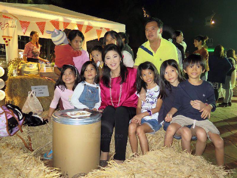 วันที่ 13 เมษายน 2558 น.ส.ยิ่งลักษณ์ ชินวัตร อดีตนายกรัฐมนตรี พร้อมนายสมชายวงศ์สวัสดิ์ อดีตนายกรัฐมนตรี นายบุญทรง เตริยาภิรมย์ อดีตรัฐมนตรีว่าการกระทรวงพาณิชย์ ด.ช.ศุภเสกข์ อมรฉัตร หรือน้องไปป์ บุตรชา