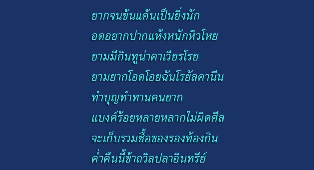 กลอนเตือนสติ ผู้ที่มักทำบุญสร้างวัตถุ มากกว่าการกระทำทางกาย วาจาและใจและฝากเตือนไปยังพระที่มัก ใช้จิตวิทยาเพื่อให้ผู้คนหลงเชื่อ ให้ทำบุญด้วยเงินทอง ยกยกปอปั้นให้ทำเยอะ แสดงว่าคนรวยได้บุญกว่าคนจนนะสิ แ