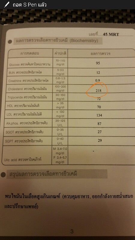 ผมอายุ 32ปี ตอนนี้วิ่ง4-5ห้าวันต่อสัปดาห์ วันละชั่วโมง ได้ 8-9 กิโล ไม่กินจุกจิก ไม่กินน้ำหวาน ของทอดกินบ้างแต่น้อย แต่พอมาตรวจสุขภาพ ประจำปี คลอเรสเตอรอล เกินมาเป็น 218 จาก ที่มันไม่ควรจะเกิน 200 ผมไม่เข้าใจจริงๆ เห็นเพื่อนๆ ที่ทำงาน กินไม่เลือก ไม่ออกกำลังกาย แต่ ไขมันในเลือด ปกติ ท้อใจจังเลยครับ