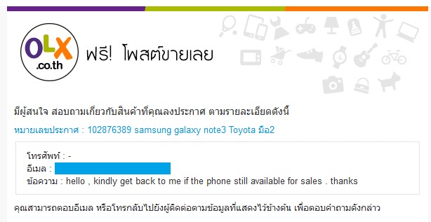 ประกาศขาย Note3 ทาง OLXไทย แต่มีชาวต่างชาติมาขอซื้อ??