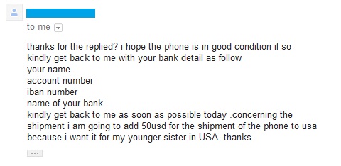 อยากจะสอบถามเพื่อนๆที่เคยซื้อขายโทรศัพท์ผ่านทาง OLX หรือเว็บอื่นๆก็ได้ครับ ผมได้ประกาศขาย Samsung Note3 ทาง OLX.co.th แล้วปรากฏว่ามีชาวต่างชาติคนนึงตอบกลับมาขอซื้อ