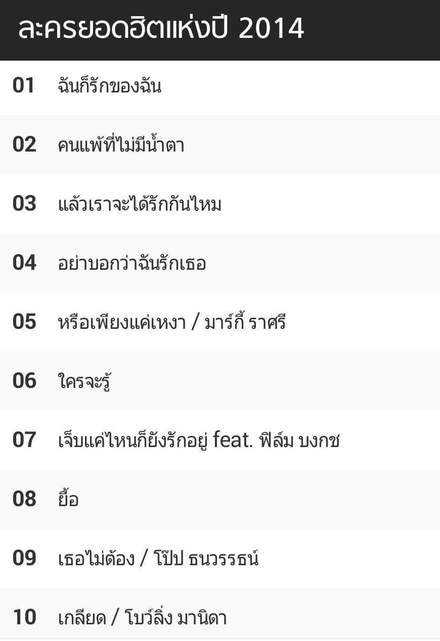 10 เพลงละครยอดฮิตแห่งปี 2014