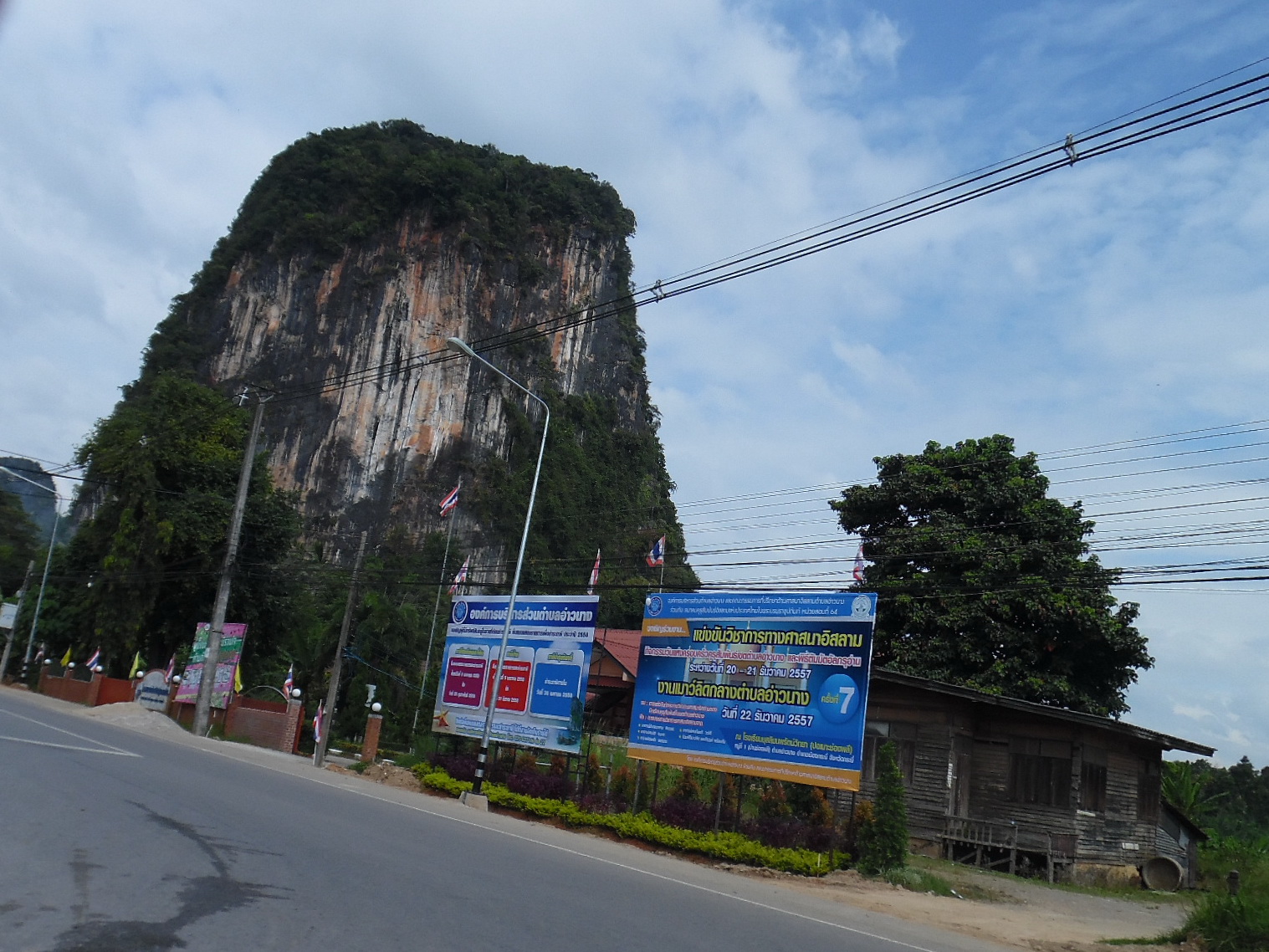 นั่งรถขาวชมวิวตามทางมาเรื่อย ดูภูเขาหินปูนที่ตั้งเด่นเป็นช่วงๆ ข้างทาง มีสวนปาล์ม สวนมะพร้าว สวนยางพารา บรรยากาศธรรมชาติดีครับ ชอบๆ... รู้สึกว่าเมืองกระบี่นี่ก็น่าอยู่เหมือนกันแฮะ ชักอยากจะมาทำงานที่นี่ซะแล้วสิ อิอิ