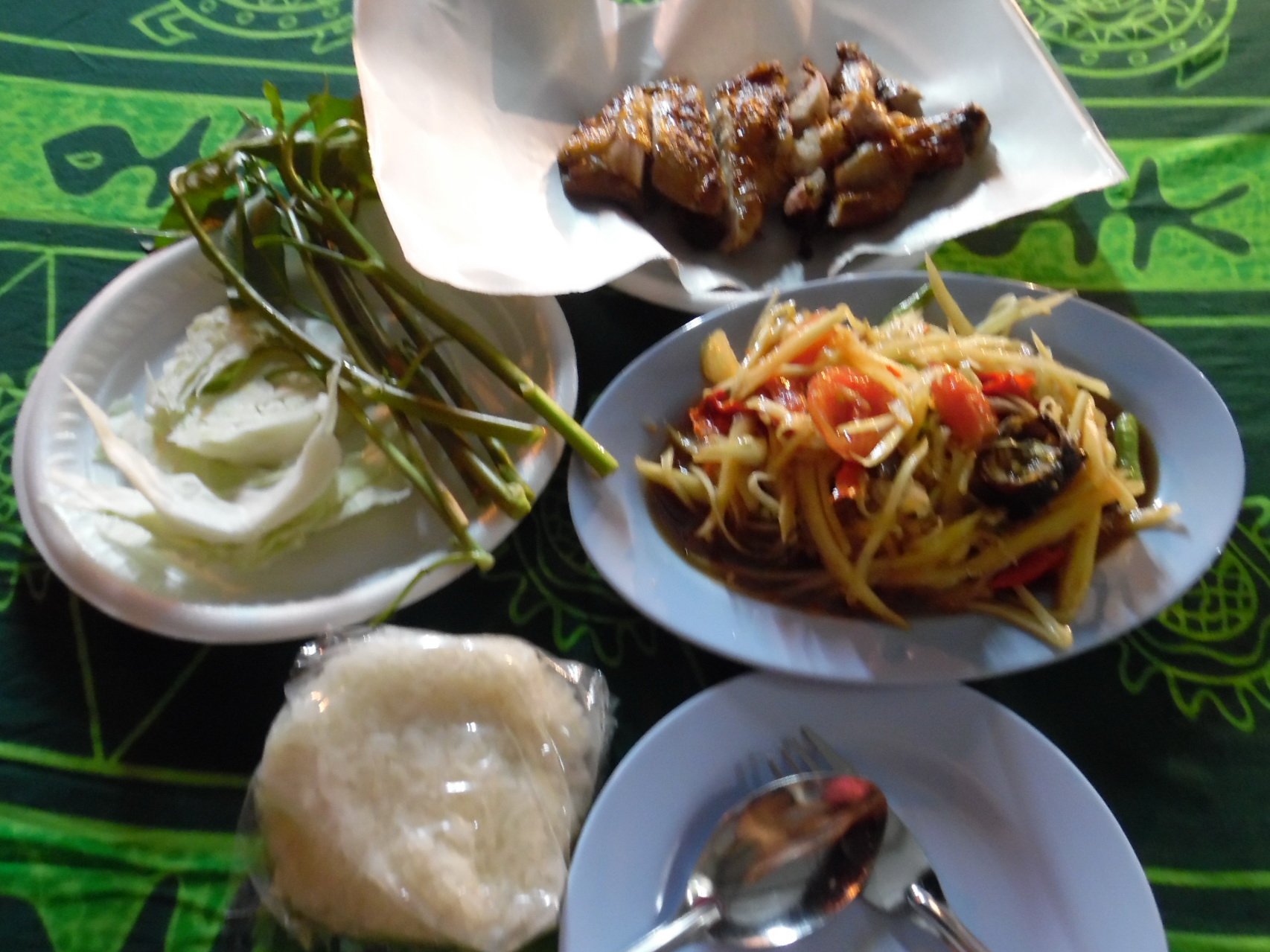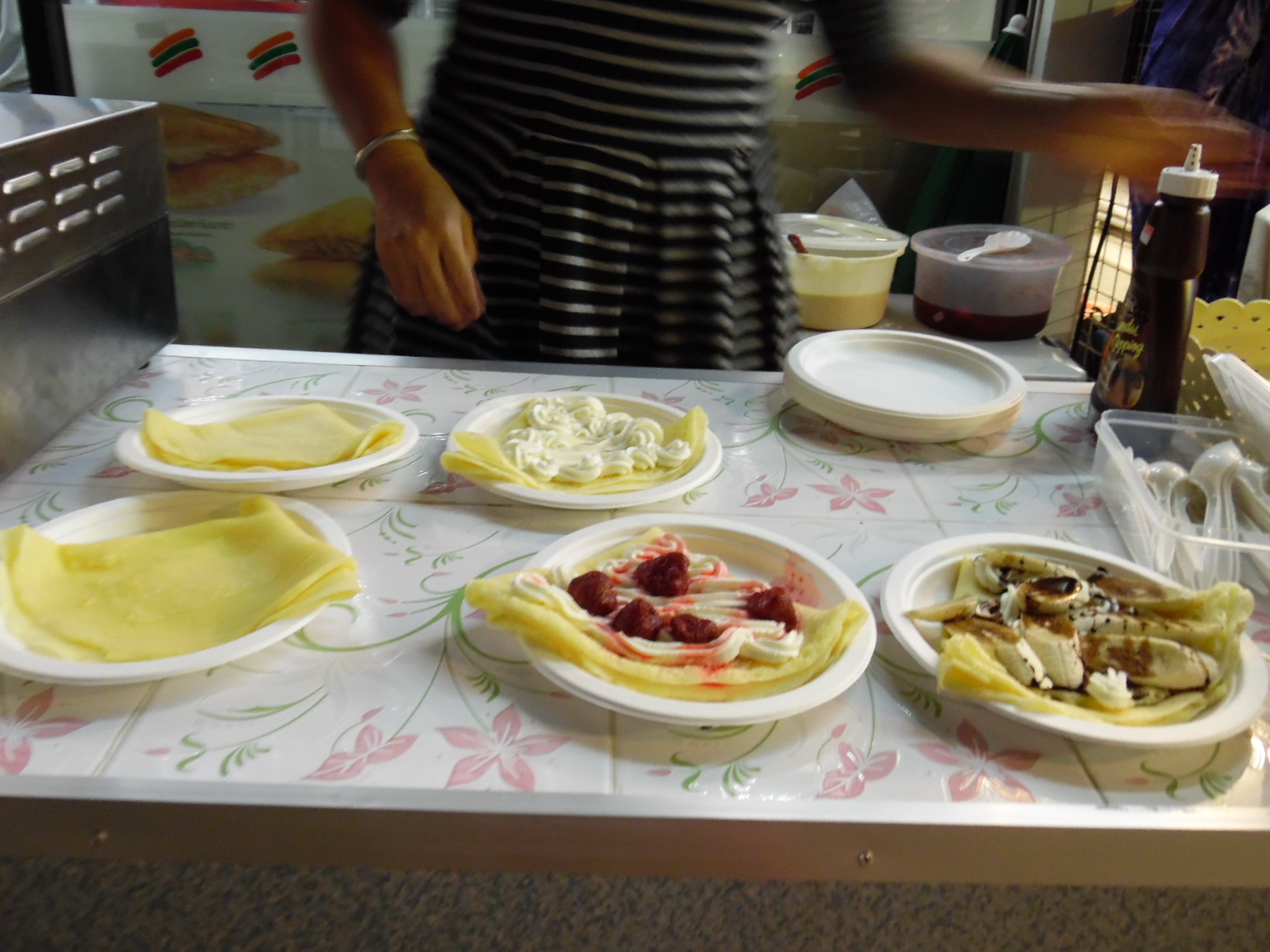 ตอนเย็นๆ เริ่มหิวข้าวอีกละ จึงได้แว๊นเข้าไปแถวๆ ที่ขายของย่านการค้าของอ่าวนาง เดินดูของกินไปเรื่อย เห็นขนมชนิดหนึ่งซึ่งไม่เคยกินมาก่อน เป็นเหมือนแป้งเครป วางทับด้วยผลไม้(ผมเลือกมะม่วง ปกติชอบกินมะม่วง) มีวิปครีม ราดด้วยช็อกโกเเลต อร่อยมากกก ในราคา 40 บาท ขายอยู่หน้าเซเว่น พี่คนขายแกเป็นคนศรีสะเกษ ก็เว้าอีสานนำกันจักหน่อย ตามประสาคนบ้านเดียวกัน