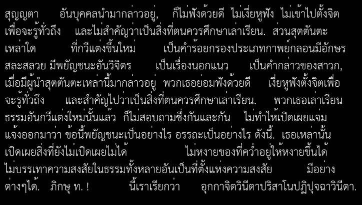 "เมื่อผู้อื่นกล่าวพระสูตรที่กวีได้รจนาไว้เป็นคำกวี มีอักษรวิจิตร มีพยัญชนะวิจิตร