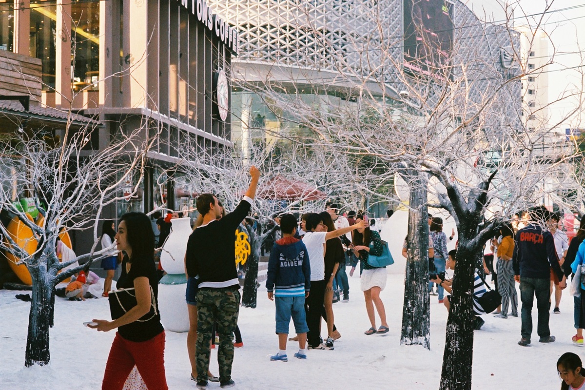 ต้นไม้เล็กๆแถวนั้นเหี่ยวเฉาจริงๆครับ และเกลือก็เลอะเทอะไปทั่วบริเวณรอบๆ ข้ามไปถึงฝั่งห้างเมญ่าเลยทีเดียว