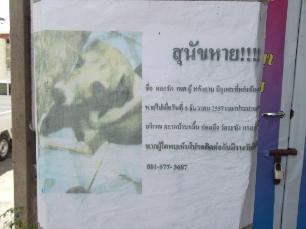 ประกาศสุนัขหาย ที่วัดไร่ขิง