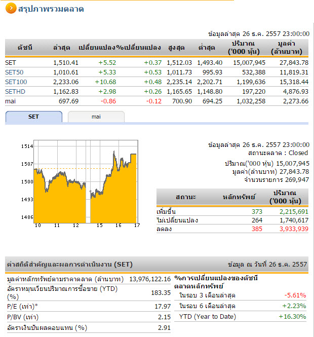 ข้อมูล...หลังปิดตลาดหุ้นเมื่อวันศุกร์
