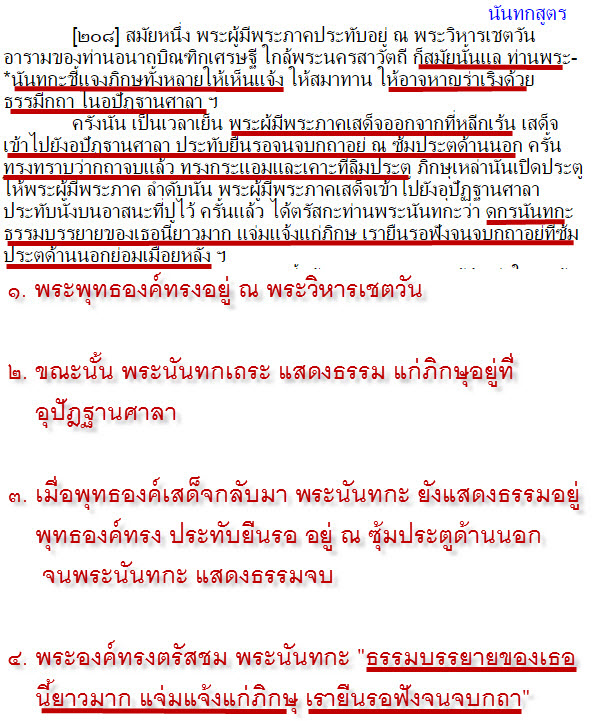 พระพุทธเจ้า ทรงยืนฟัง พระนันทกะสาวก แสดงธรรม ณ ซุ้มประตูด้านนอก จนจบ