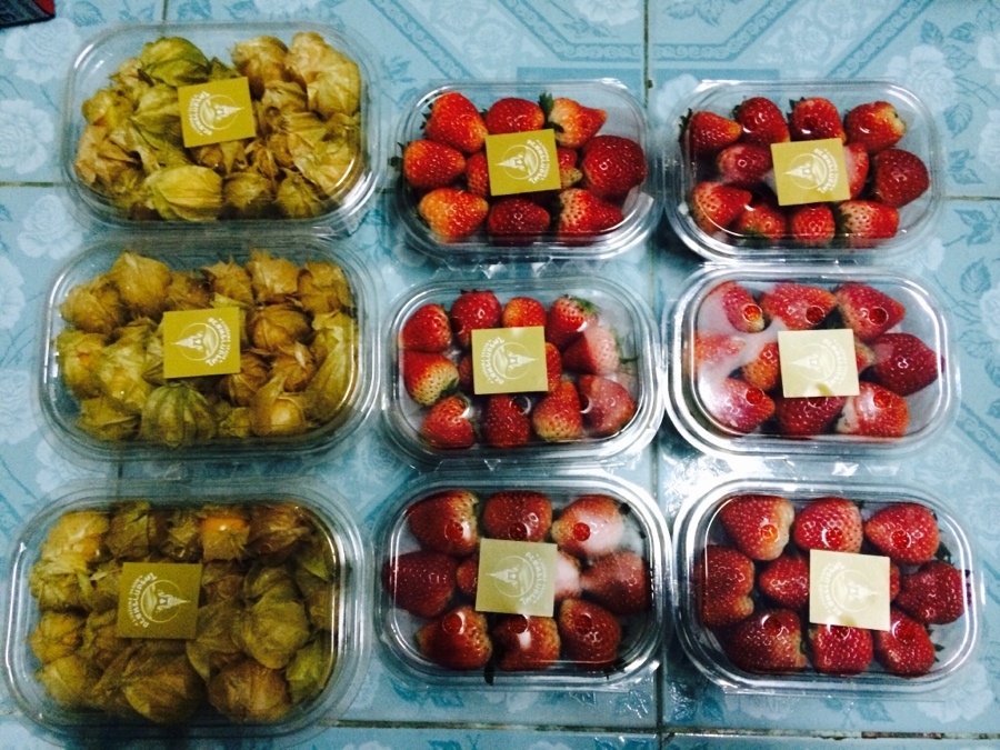 เราเคยกินเมื่อปีที่แล้วค่ะ รู้สึกไม่สะใจ อยากกินอีก ปีนี้เลยสั่งจากโครงการที่มาลงที่บางเขน (ปีที่แล้วขึ้นไปดอยมาค่ะ) ก็มีการโทรไปหาฝ่ายขายของโครงการหลวงว่าจะสั่ง สตอเบอร์รี่ 2 กิโล แบ่งเป็น เกรด 2 จำนวน 1 กิโล และ เกรด 3 จำนวน 1 กิโล เช่นกันค่ะ และปีที่แล้วมีโอกาสได้ทานลูกเคพกูสเบอร์รี่ ปีนี่เลยไม่ขอพลาดค่ะ สั่งไป 1 กิโลเช่นกัน