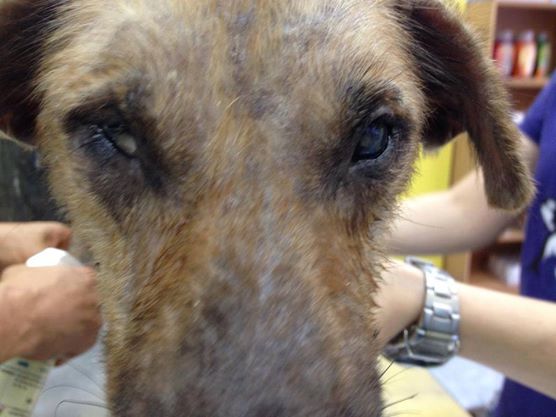 ภาพล่างคือรูปปัจจุบัน(30/3/14) ผิวหนังเป็นแบบนั้นมาจากการขาดสารอาหารอย่างรุนแรง เป็นขี้เรื้อนทั้งตัว ตาบอดสนิททั้งสองข้าง
