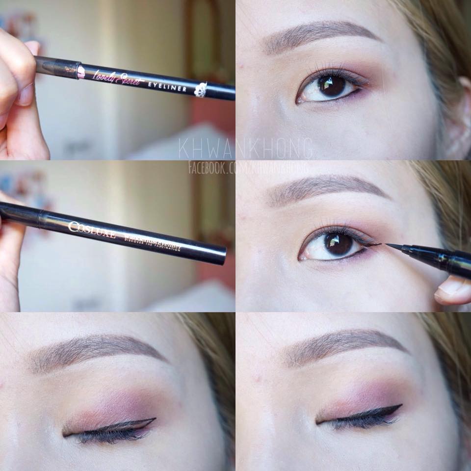 เเล้วก็ใช้อายไลน์เนอร์ของ Cosluxe เขียนไลน์เนอร์ครึ่งตาเหมือนกัน ตวัดหางให้ยกขึ้นนิดหน่อย ไม่ต้องมาก