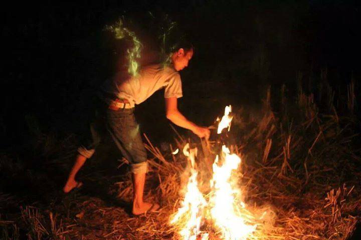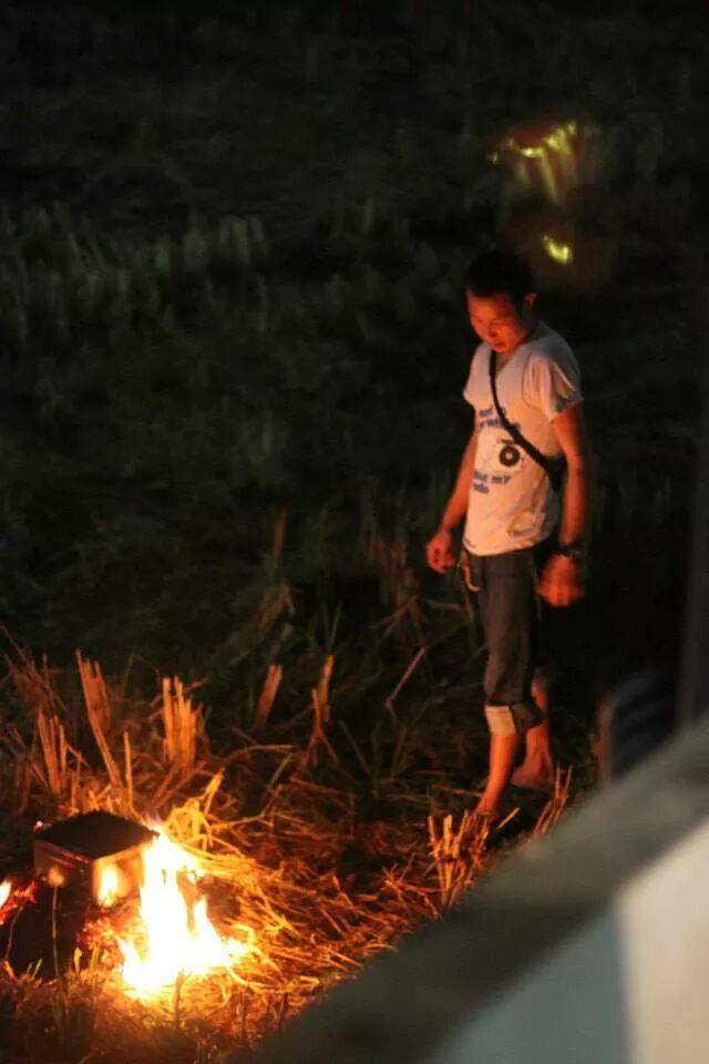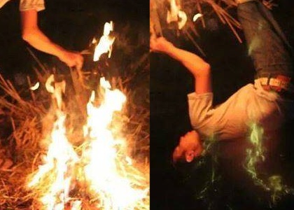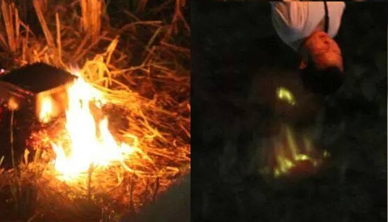 ดูดีๆมันจะมีรูปร่างเดียวกับไฟที่ผู้ชายคนนั้นจุดอยู่นั่นแหละครับ (อาจจะกลับหัวหรือสลับซ้ายขวา)