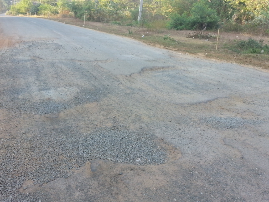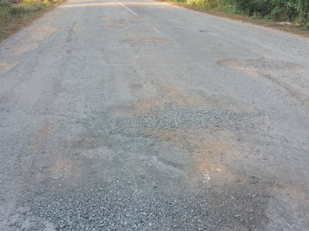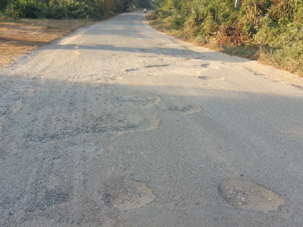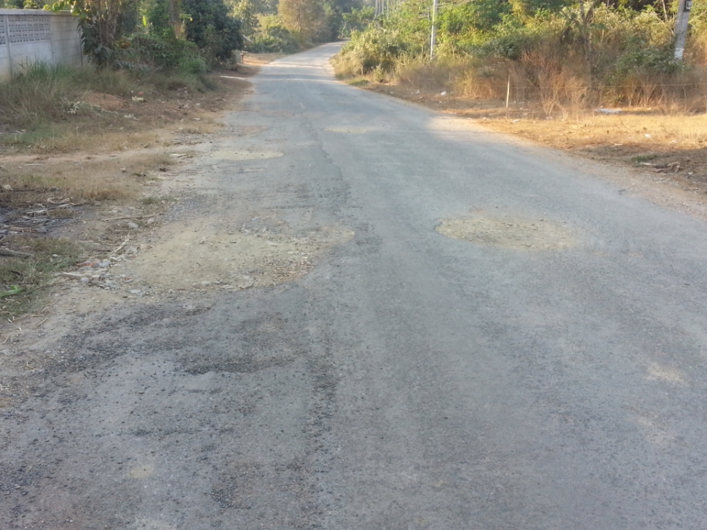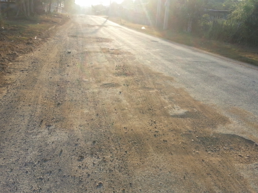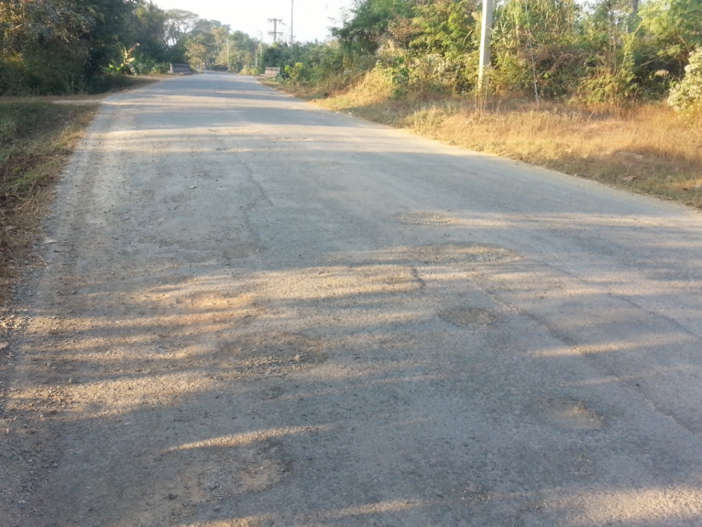 ก่อนอื่นตองขอบอกก่อนเลยว่าถนนเส้นที่ว่านี้ได้มีการสร้างมาเป็นเวลาหลายสิบปีแล้วตั้งแต่ผมยังเด็กๆ แล้วหลังจากนั้นมาก็ไม่เคยมีการซ่อมแซม บำรุงรักษาเลยจนมาถึงทุกวันนี้ จนสถาพได้เป็นแบบที่เห็นในภาพ เป็นแบบนี้มาประมาณ 4-5 ปีแล้ว