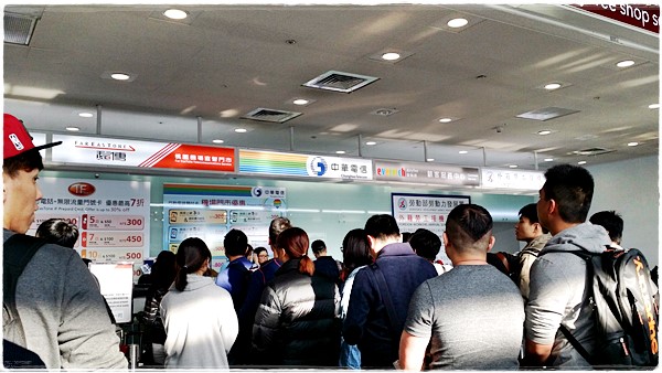 ถึงแล้วรับกระเป๋าเสร็จ ออกมาเลี้ยวทางขวา ไปหาซื้อซิมใส่โทรศัพท์กันจะได้ไม่พลาดการสื่อสาร ยืนดูมี 3 เจ้าราคาแต่ละแพคเกจเท่ากันทุกเจ้าเลย เพราะฉะนั้นเราเลือกต่อแถวที่สั้นที่สุด ซื้อแพคเกจ 5 วัน 300 NT มีค่าโทรแถมให้ 50 NT เล่น 3G/4G ไม่จำกัด ค่าโทรภายในไต้หวันนาทีละประมาณ 10 NT ส่ง SMS ครั้งละ 5 NT