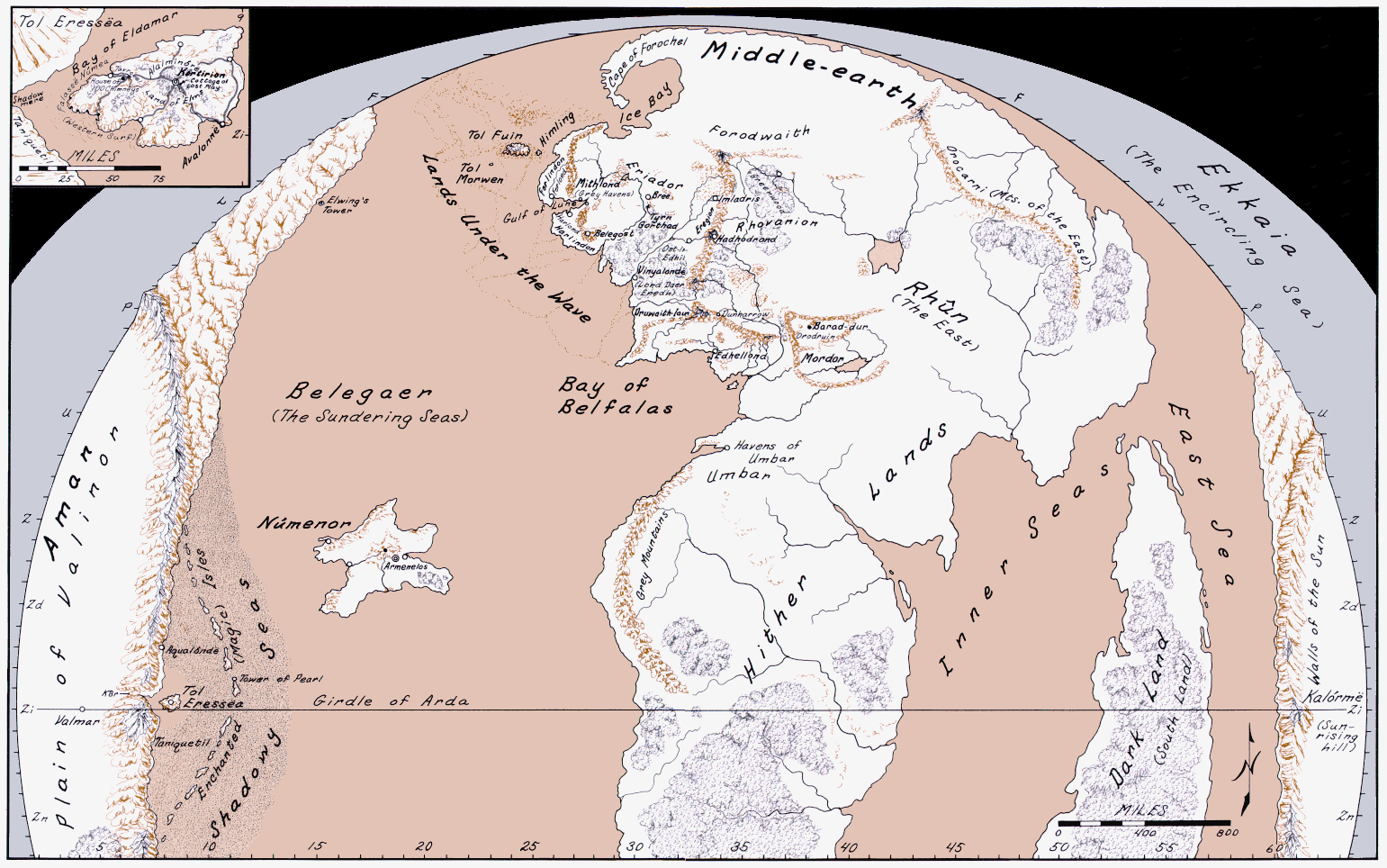 ทิศ ตะวันนออก เหนือและใต้ของ Middel-Earth