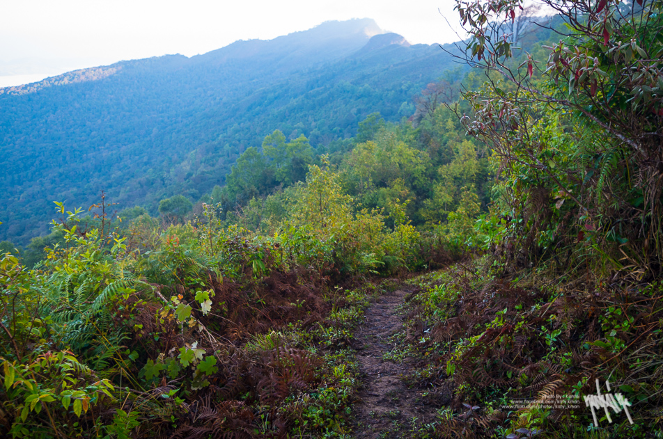 ทางเดินกลับ เป็นป่าแบบนี้ น้ำค้างลงเยอะ ค่อนข้างลื่น (ผมลื่นหงายหลังไป2รอบ)