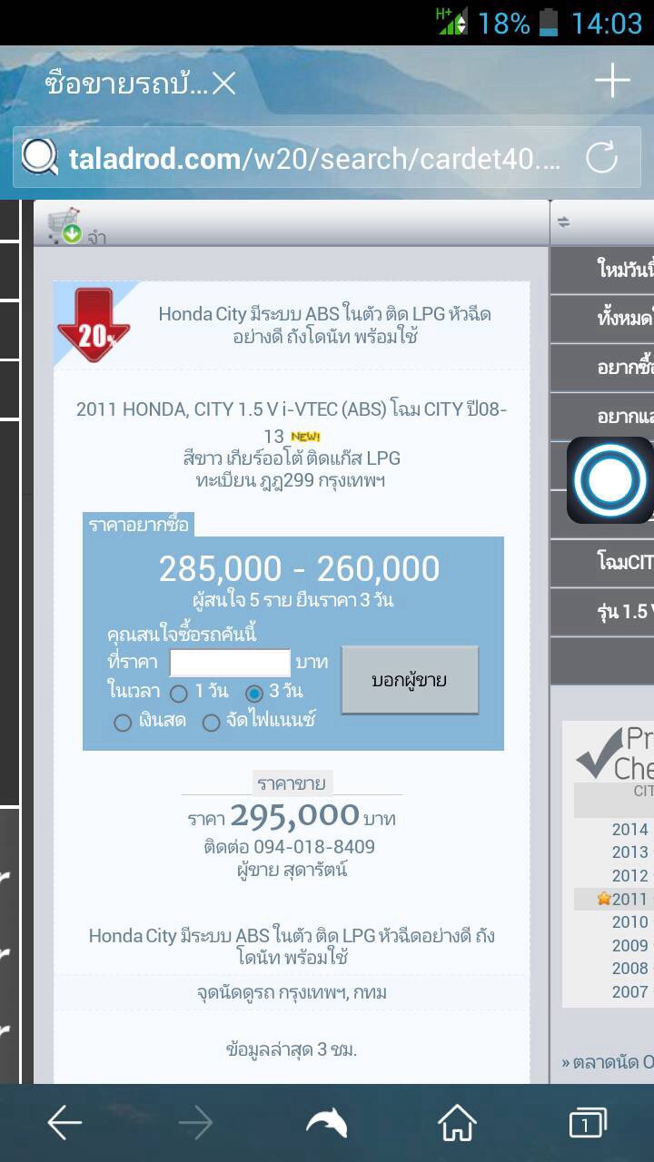 ลองรีเฟรชหน้าจอดูหน้าขาย ปรากฏไม่มีรถแล้ว คงลบไป พยายามโทรสัก 10-15 นาที เหมือนเดิม ปิดเครื่อง