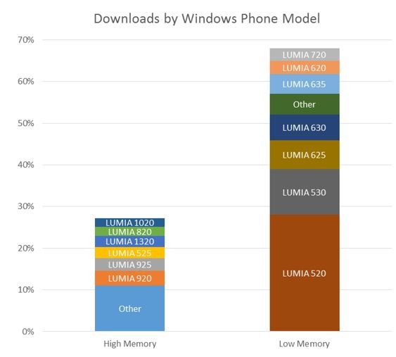ทั้งนี้ตามสถิติที่ได้กล่าวไปนั้น เป็นการนับการติดตั้งเฉพาะบน Windows Phone 8 และ Windows Phone 8.1 เท่านั้น ไม่ได้หมายรวมไปถึง Windows Phone 7.x แต่อย่างใด ซึ่งการที่มีสถิติบ่งชี้ตัวเลขออกมาแบบนี้ ก็ไม่น่าแปลกใจเท่าไรเพราะว่า Windows Phone นั้นส่วนใกญ่ถ้านับตามเครื่องจะมีรุ่นที่มีแรม 512 Mb มากกว่าอยู่แล้ว เนื่องจากเป็นระบบปฏิบัติการที่ใช้งานได้ดีในสมาร์ทโฟนรุ่นล่าง ลื่นไหลไม่ขัดใจผู้ใช้งาน