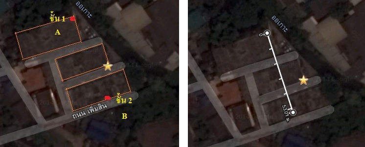 ต้องการส่งสัญญาณ wireless จากจุด A ซึ่งอยู่ชั้น 1 ไปที่ตำแหน่ง B ซึ่งอยู่ชั้น 2 ห่างกันประมาณ 55 เมตร โดยที่มีตึกบังอยู่ตามรูป