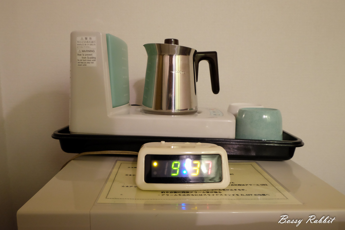 ข้างเตียงฝั่งหน้าต่างมีกาต้มน้ำร้อน นาฬิกาปลุก และตู้เย็นเล็กให้ค่ะ (ไม่ได้ใช้เลย อิอิ) ส่วนตรงกระจกช่องทางเดินก็จะเป็นกระจกยาวเต็มตัวและมีไม้แขวนเสื้อให้ด้วยค่ะ อีกข้างของหัวเตียงจะเป็นโต๊ะไม้บิวอิน (ลืมถ่ายขอโทษทีค่ะ) แล้วก็เก้าอี้ขนาดกระทัดรัดด้วยจ้า
