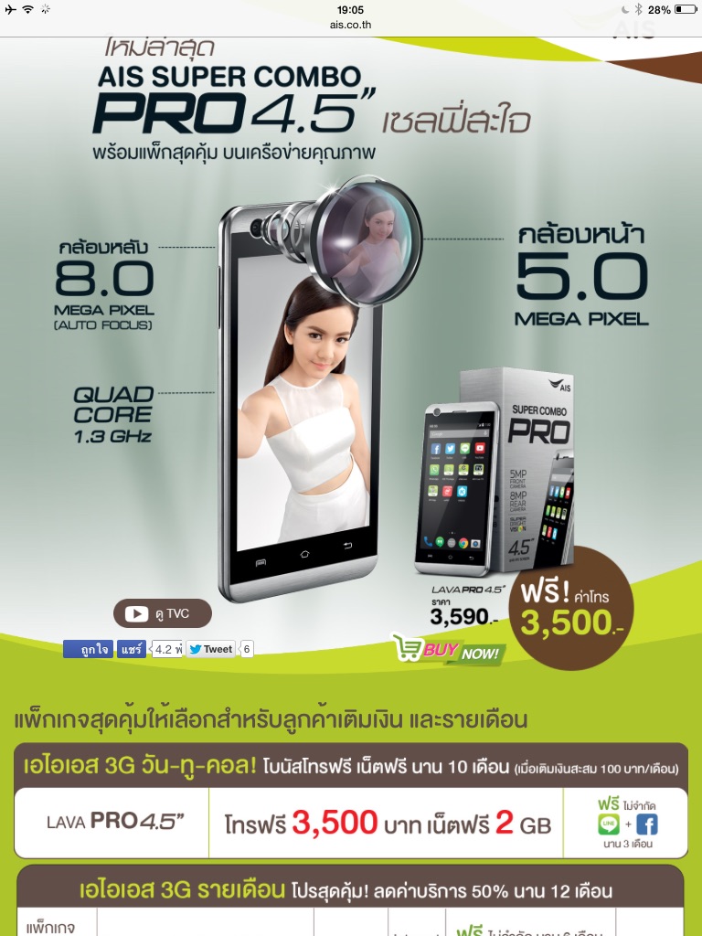 ผมเป็นลูกค้าAIS มากว่าสิบปี และติดตามข่าวสารของ AIS มาตลอด ระยะหลัง AIS มีการจำหน่ายมือถือเองและผมก็ได้ซื้อมาให้แม่ใช้เครื่องหนึ่งคือ lava 4.5 เมื่อเดือนก่อน ช่วงก่อนปีใหม่เห็นว่ามีการออกมือถือรุ่นใหม่ คือ super combo plus 4.5 ซึ่งดูแล้วเสปคใช้ได้ ราคาประหยัด จึงอยากลองซื้อมือถือ android. มาลองใช้ดูหลังอยากที่ใช้ iphone มานาน ถ้าใครดูโปรโมชั่นจะเห็นว่าน่าสนใจ มีทั้งระบบเติมเงินและรายเดือน. ซึ่งผมก็สนใจซื้อแบบเติมเงินเพราะส่วนตัวใช้รายเดือนของ AIS อยู่แล้ว