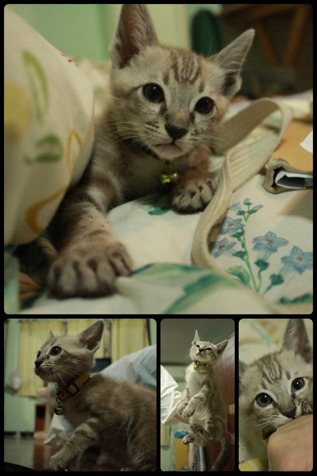 คาดว่ามีเชื้อสายแมวป่า(รูม่านตากลมๆ)กับแมวพันธุ์(มีลายช๊อตแฮร์จางๆ) อันนี้เดาล้วนๆ><