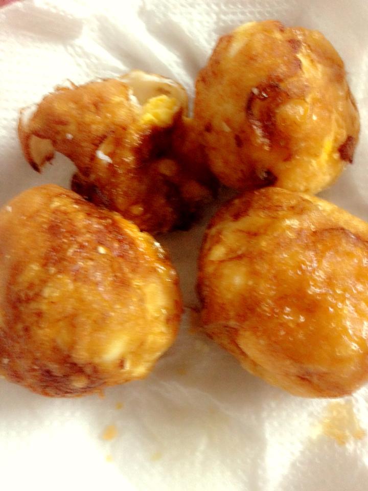 4.ยกไข่สะเด็ดน้ำมัน จากน้ำใช้ทิชชู่สำหรับซับน้ำมันซับอีกทีเป็นอันเสร็จ