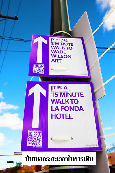 ป้ายชี้ทิศบอกระยะเวลาการเดินถึงสถานที่หลักๆ นอกจากช่วยให้คนที่คิดจะขับรถลงมาเดินแล้ว