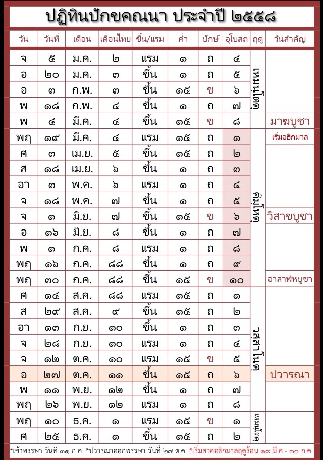 ปฏิทินปักขคณนา2558