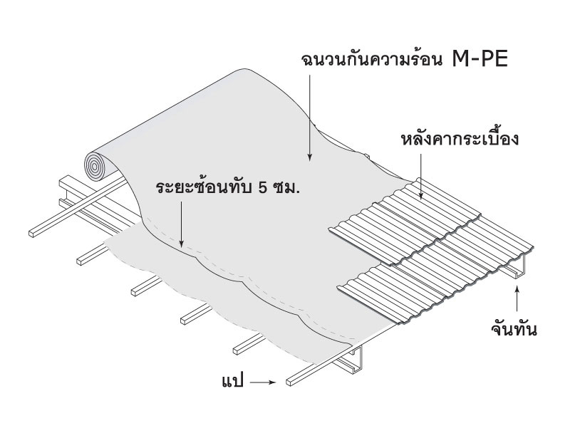 (กรณีนี้คือฉนวนจะติดกับแผ่นหลังคาสั่งรีดมาจากโรงงานเลย)