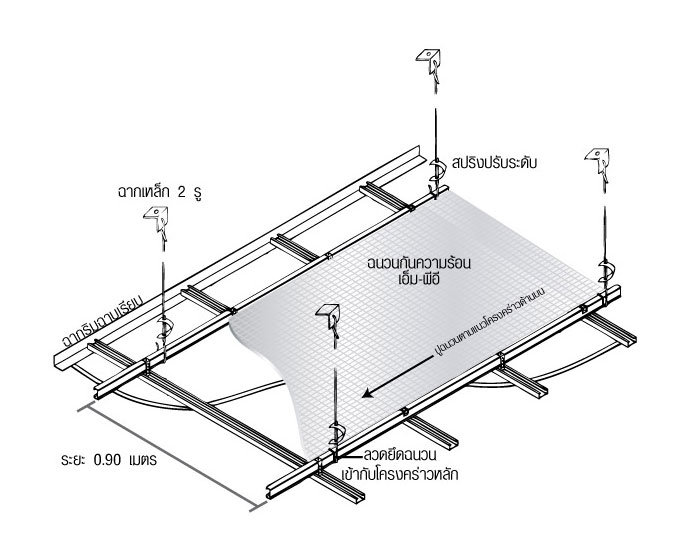 3. ติดฉนวนกันความร้อนใต้แปหลังคาบริเวณช่วงห่างของจันทัน
